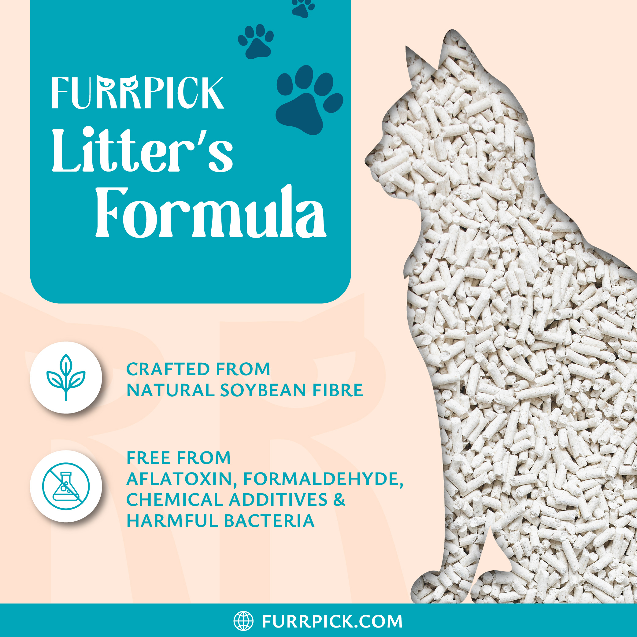 - Pour Furrpick Premium Tofu Litter into the tray, filling it up to 5-7 cm deep