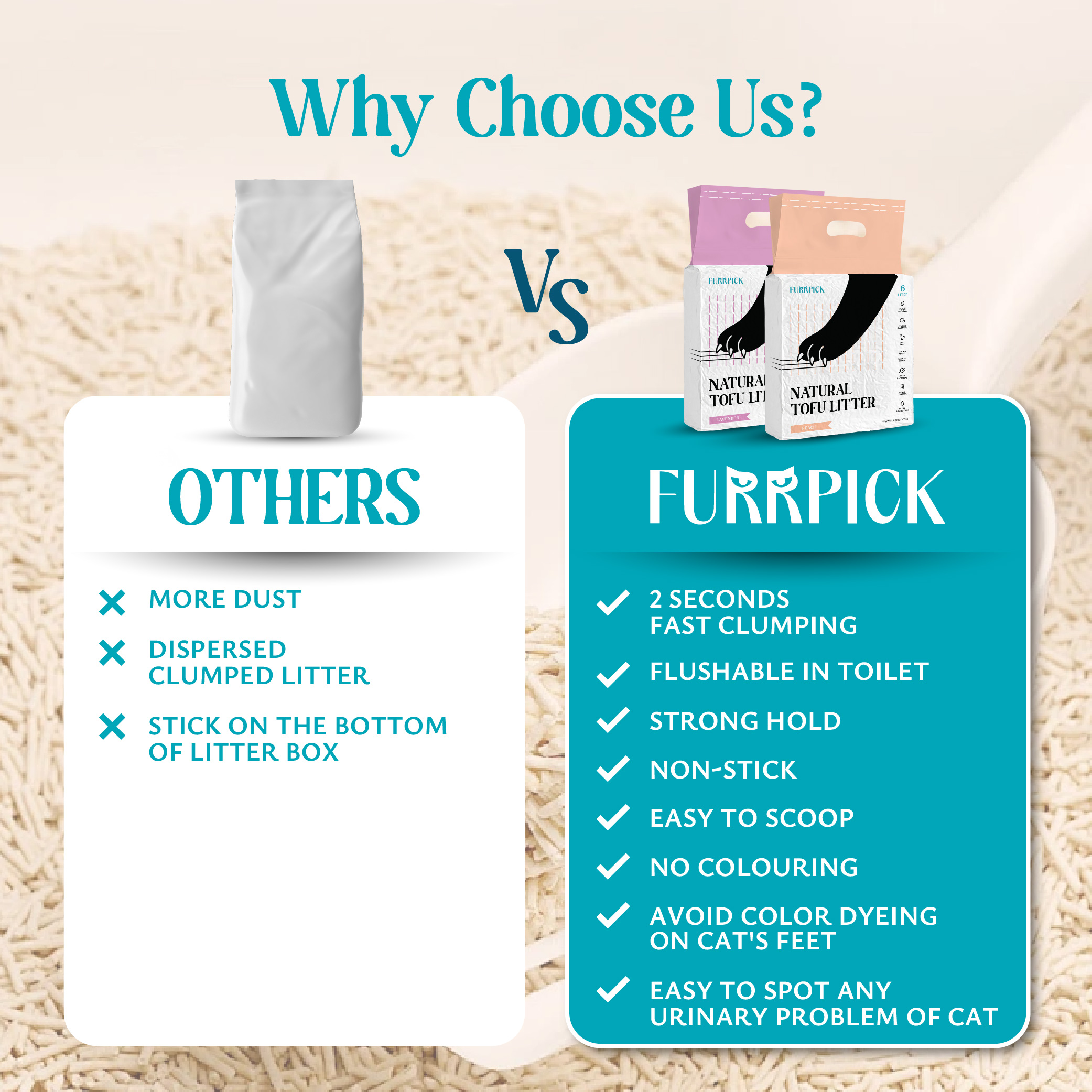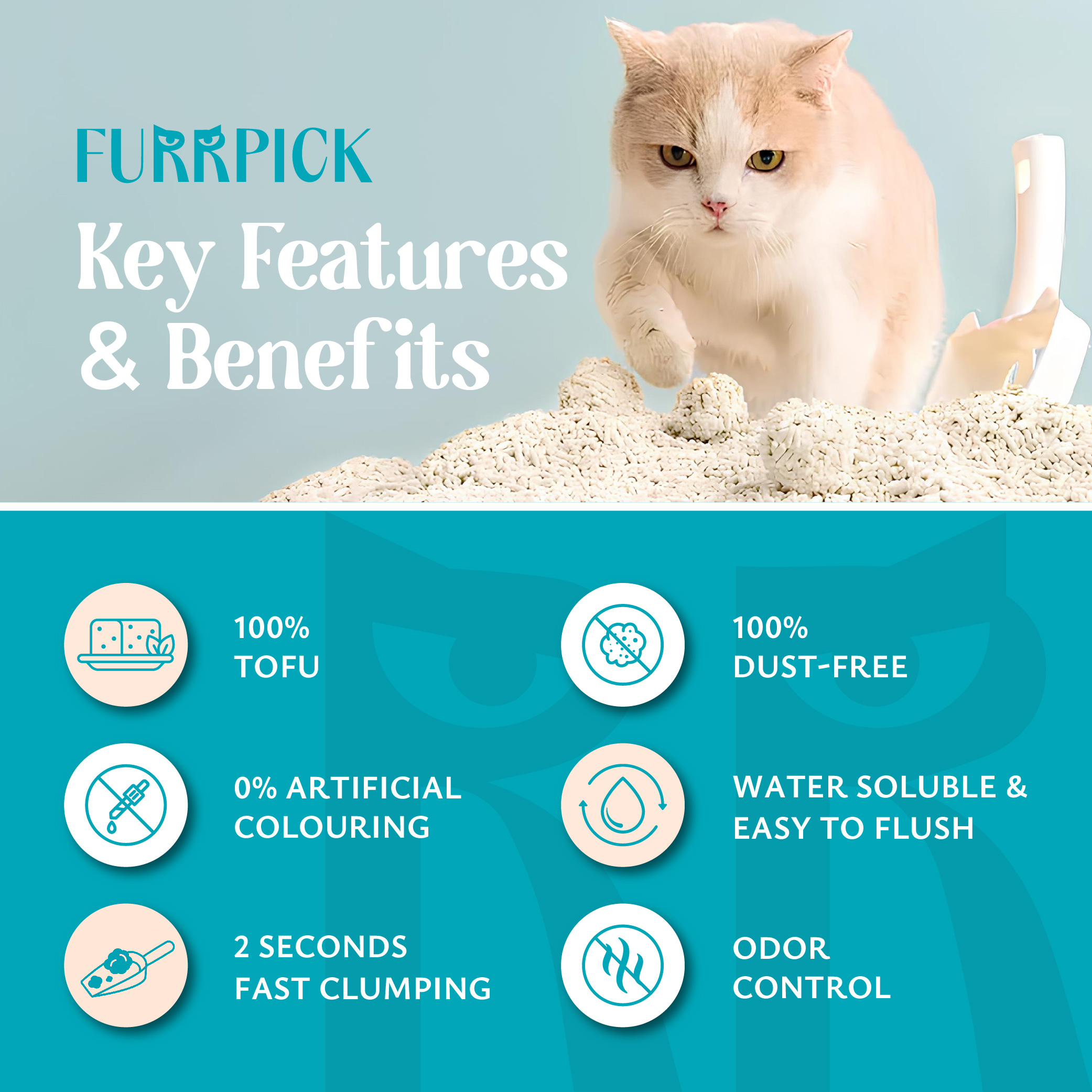✅Fast Clumping & Absorption: 2 second fast clumping, strong hold and non-stick to your litter box, makes it easy to scoop and maintain
